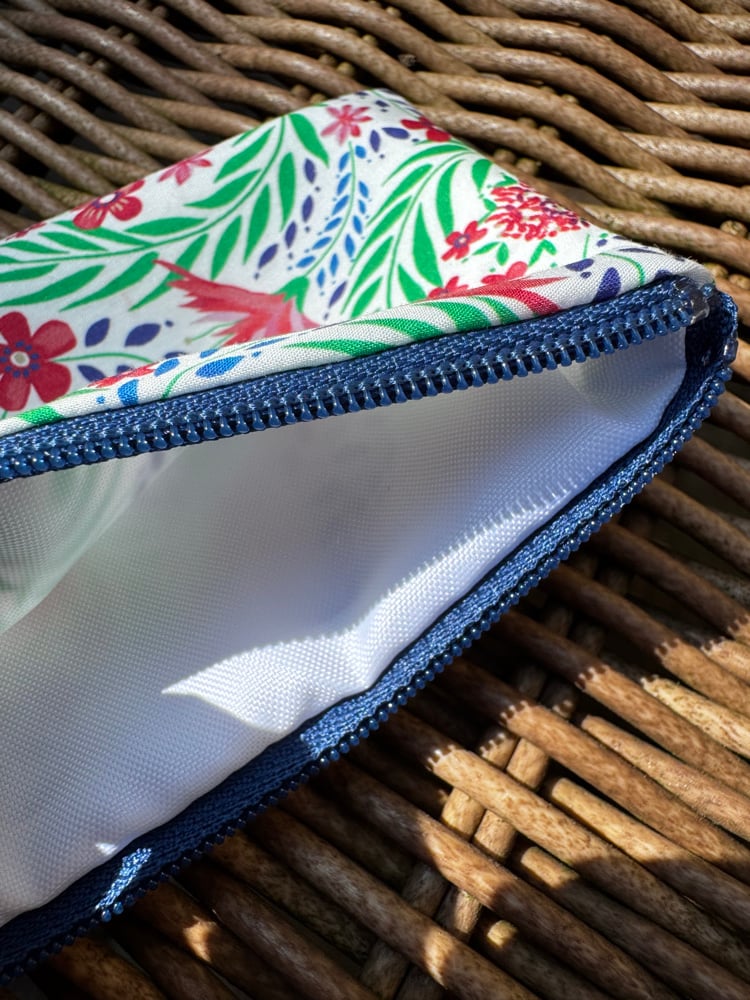 Handmade pouch with water resistant lining in a beautiful Liberty print cotton.