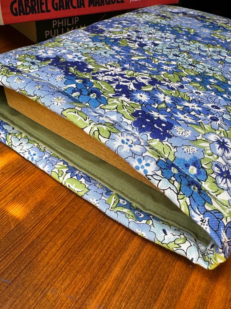 Beautiful sleeve to keep your book safe and snuggly! This lightly padded sleeve has a plain cotton lining (lining colour may vary) and a lovely Liberty of London cotton outer.